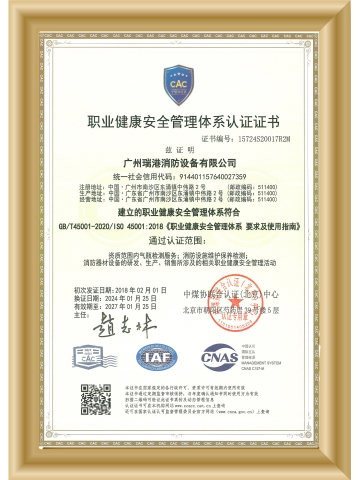 職業(yè)健康安全管理體系認(rèn)證證書